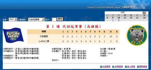 第六戰10月3日(六)@高雄澄清湖棒球場(if necessary)