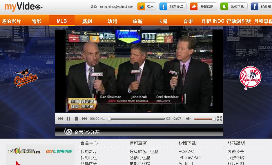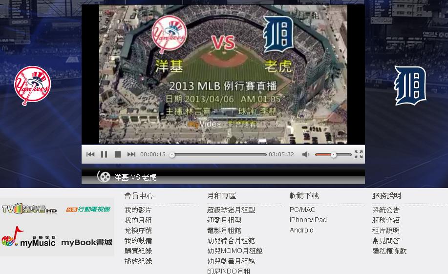 在自己本身上班忙碌的情況下,回到家都已經是晚上五六點,有時候想要在白天忙裡偷閒看美國職棒都沒有辦法,不像前同事一樣有著手機上網,最後我終於找到一個相當好的管道,那就是myvideo頻道,解決了我相當多想要看球卻無從立刻看球的問題。